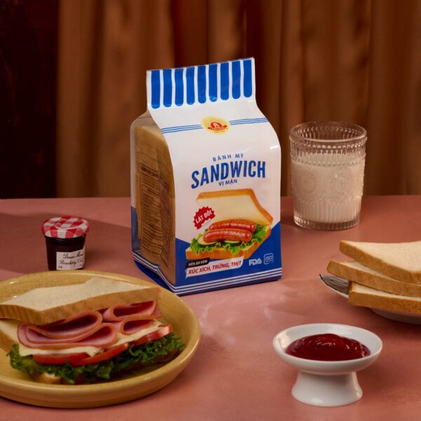 Hậu vị mặn nhẹ và thanh thoát, một lát Sandwich áp chảo cùng trứng ốp la lòng đào, thêm vài lát thịt nguội hay phô mai tan chảy, bạn đã có ngay một bữa sáng đẳng cấp như tại nhà hàng. Bánh Sandwich vị mặn làm bật vị béo của trứng và sự đậm đà của thịt mà không làm lấn át hương vị tự nhiên của nguyên liệu.