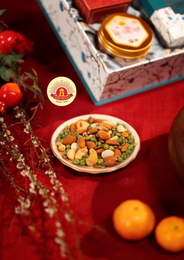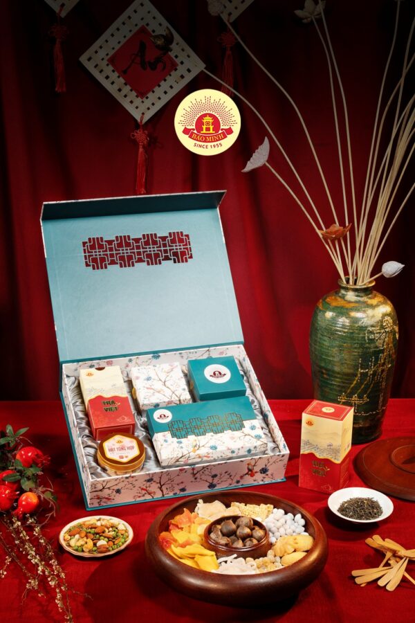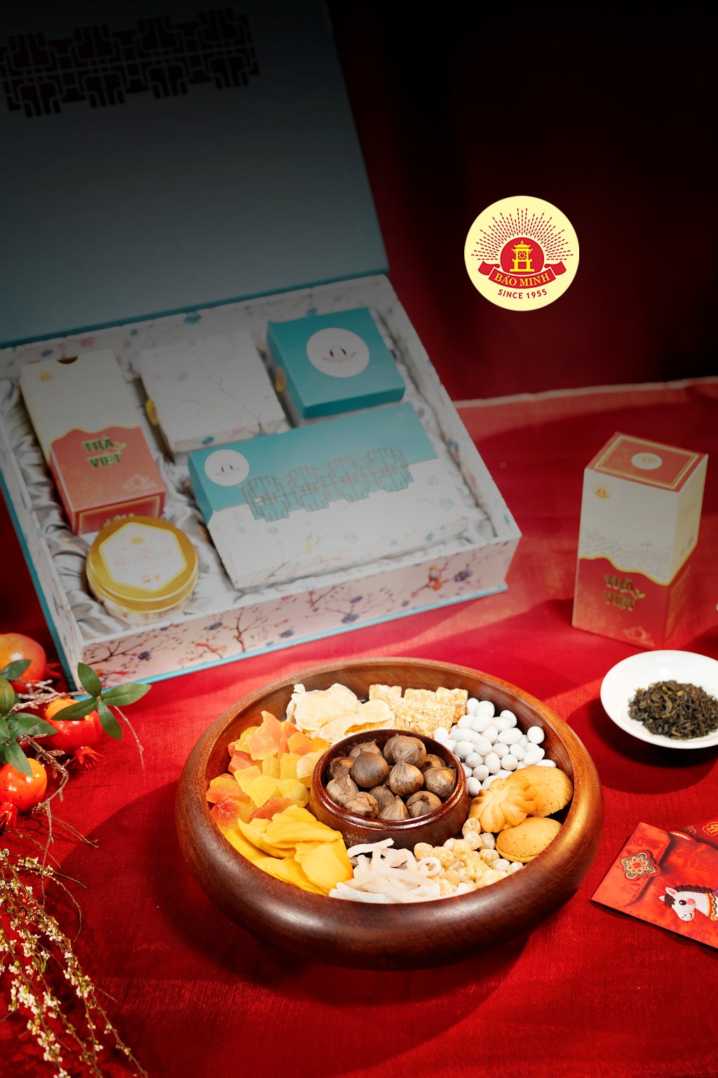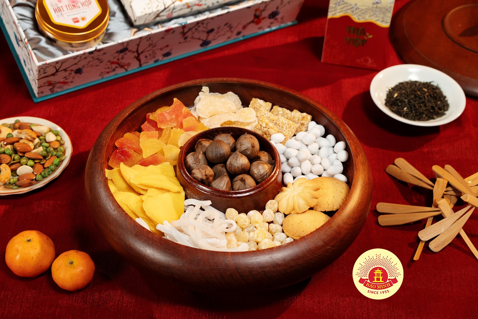 Mứt thập cẩm, tỏi đen, hoa quả sấy, bánh kẹo, trà, hạt tổng hợp