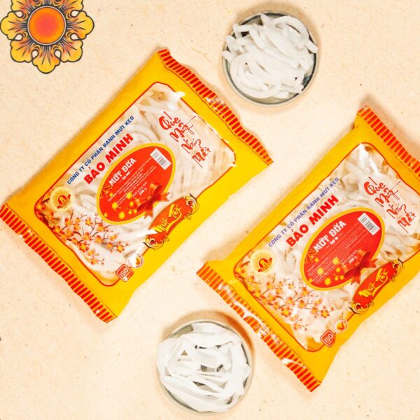 Mứt Dừa được sản xuất từ những trái dừa tươi Bến Tre. Dưới hệ thống máy móc hiện đại, áp dụng công nghệ tiên tiến trong sản xuất, Bảo Minh đã cho ra thị trường những sản phẩm Mứt Dừa sợi tươi ngon, trắng nõn.