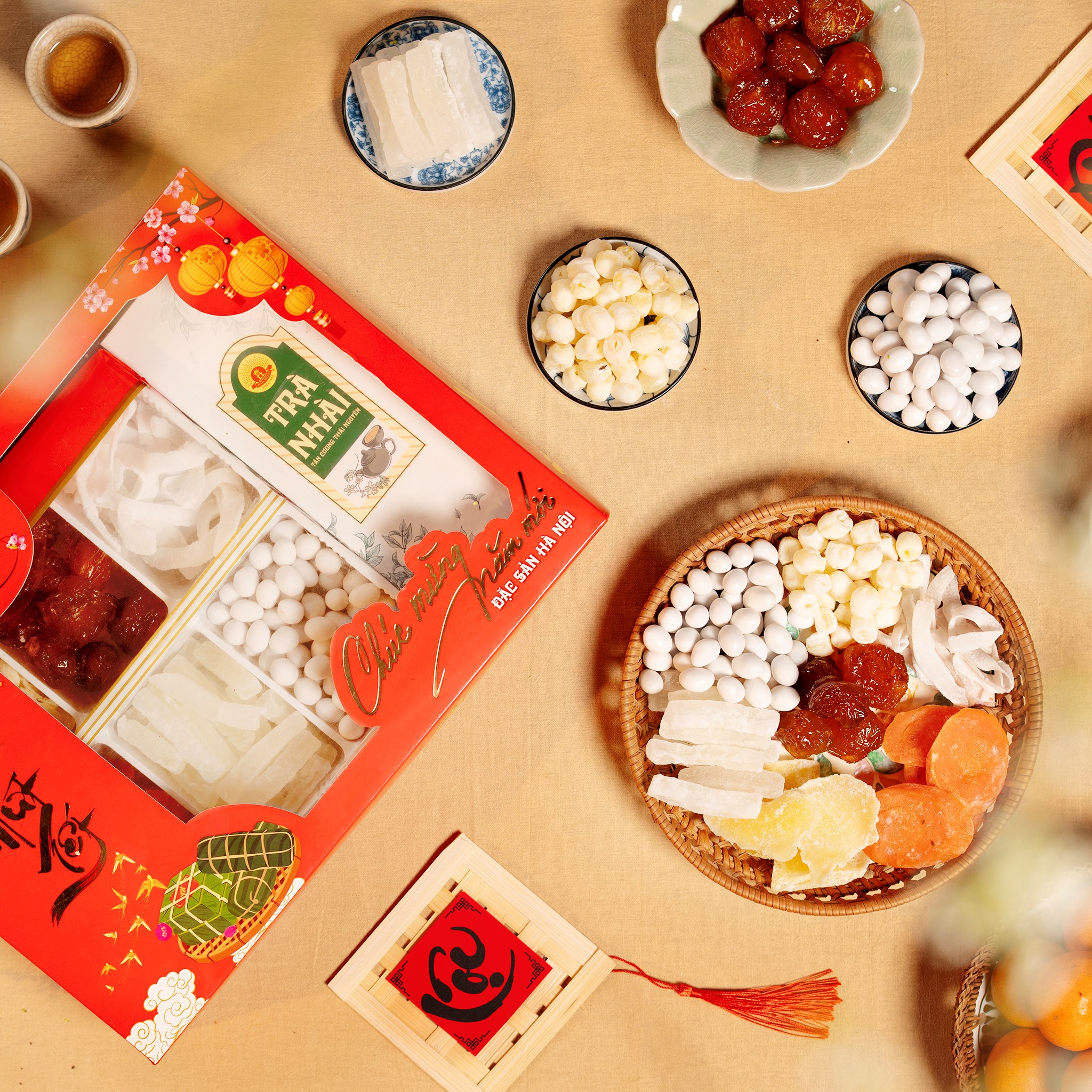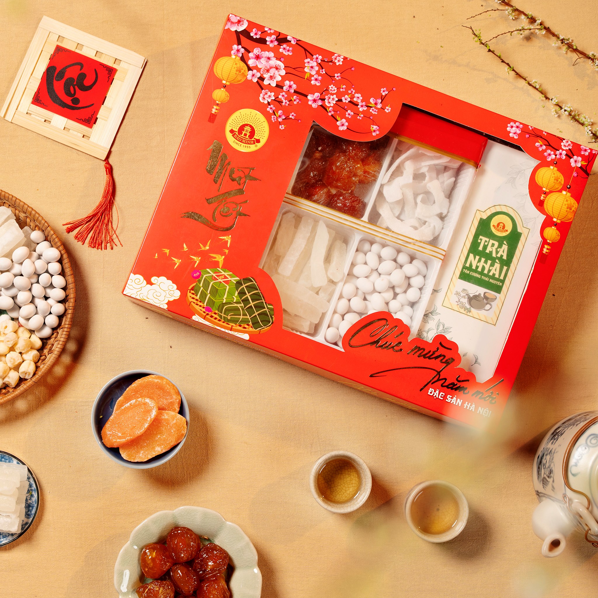 Mứt Tết thập cẩm của Bảo Minh gồm mứt bí, mứt lạc, mứt cà rốt, mứt dừa, mứt gừng, mận, mứt sen. Tất cả được đóng gói đẹp đẽ với nhiều hình dáng mẫu mã khác nhau, phù hợp để trưng bày trên bàn thờ gia tiên, biếu tặng người thân/bạn bè hoặc đối tác, doanh nghiệp…